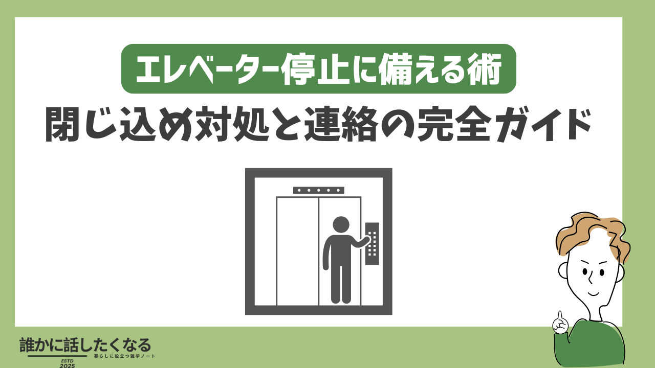 停電や地震、機械故障でエレベーターが止まるのは珍しくありません。大切なのは、「閉じ込められても命を守る」ための手順を平時に決め、非常時は確実に伝える・待つ・節電するの3本柱を守ること。本ガイドは、事前準備→停止直後→閉じ込め中→救出後→再発防止の流れで、家庭・職場・マンション管理でそのまま使える形に整理しました。子ども・高齢者・障害当事者の視点も織り込み、印刷して貼れる表とチェックリスト、Q&A、用語辞典まで一括で掲載します。