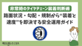この4軸を数値に置き換えると、タイヤ選びがブレにくい(例:雪道日数12日/深夜走行あり/峠越え月2回)。