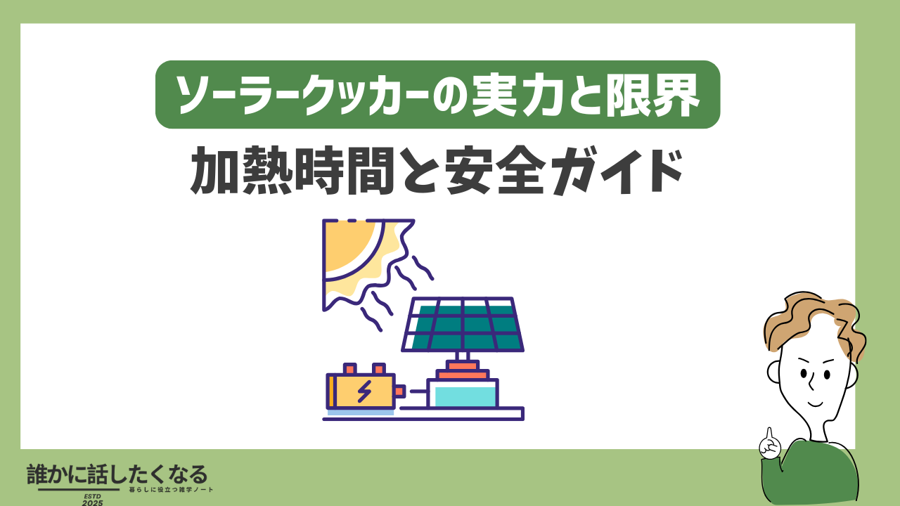 電気もガスも使わずに、太陽だけで“煮る・蒸す・焼く”を叶える。 それがソーラークッカー(太陽熱調理器)です。本稿は、仕組み→種類→加熱時間の現実値→季節・天候の読み方→安全運用を、表・手順・計算の目安まで落とし込んだ実務ガイド。