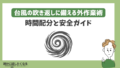 - 再判定は30〜60分後に固定。状況が良化/悪化しても次の再判定時刻まで判断を変えない(迷走防止)。