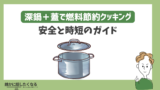 浅く広い鍋・深型フライパンは少水量でも麺が泳ぎやすく対流が起きやすい。沸騰直後は中火、その後は小さく沸かし続けるのが糊化の近道。フタで蒸気を逃がさないと湯の減りが抑えられます。