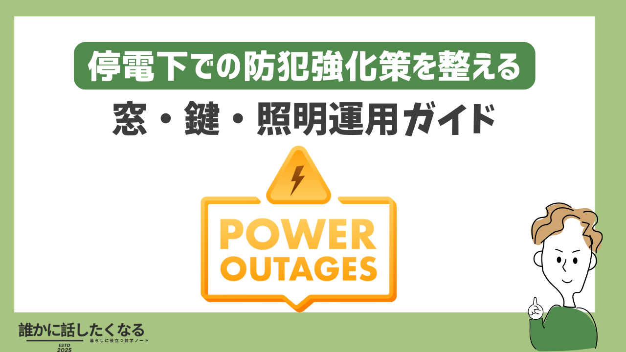 停電は“暗さ・静けさ・混乱”が重なり、侵入や盗難の機会を生みやすくなります。 しかし、自宅の弱点を発見して窓・鍵・照明の“三本柱”を正しく運用すれば、限られた道具でも抑止力は大きく高まります。