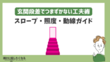 - 等高線:同じ高さを結ぶ線。詰む=急、広い=緩。