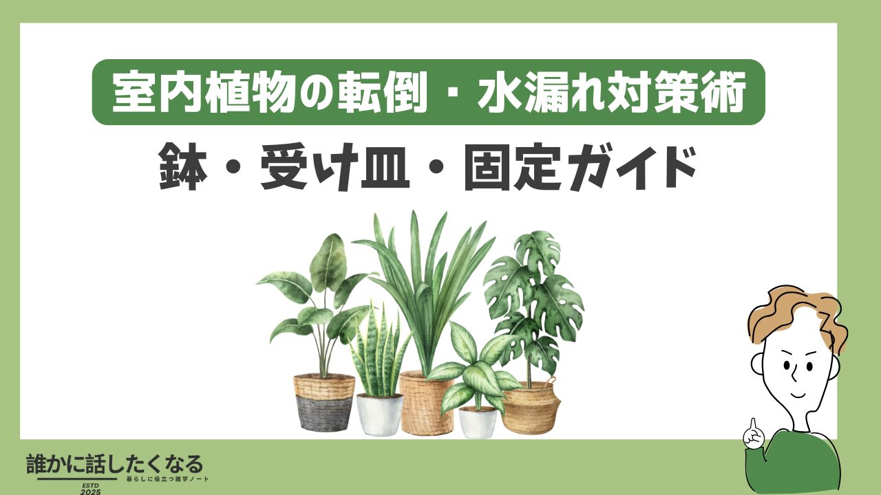 室内の緑は癒やしだが、倒れた鉢とこぼれた水は一瞬で住まいを傷める。 床の膨れ、カビ、すべり事故──いずれも事前の設計で防げる。