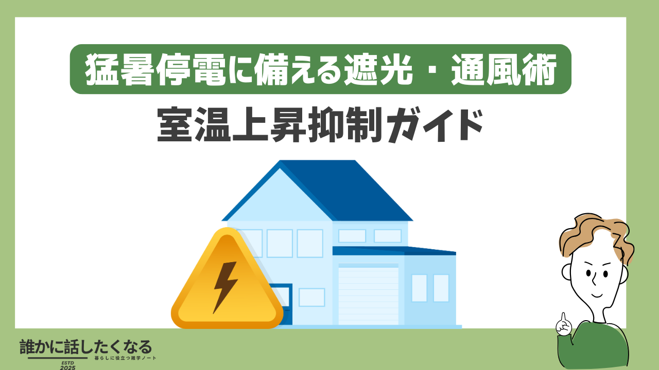 エアコンが止まっても室温の上昇を“遅らせる・逃がす・溜めない”。 この三原則を、誰でも今すぐ実践できる遮光・反射・通風の工夫に落とし込み、停電時の一日を安全に乗り切るための手順をまとめた。