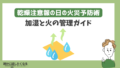 照明・調理・家電の待機電力も熱になる。停電時は自然と止まるが、復電後もしばらく火と電気の使用を控え、室温が落ち着くまで通風と遮光を優先する。電子機器の同時起動は発熱とブレーカー落ちの原因になるため、順番に立ち上げる。