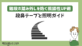 上がり框の角(段鼻)に明暗差の強いラインを入れると、足の置き場が直感で分かる。床材が濃色なら白・黄、淡色なら黒・濃グレーが有効。最初と最後の段は**太めのライン(30〜40mm)**で強調し、中段は20〜30mmで統一する。斜めの斑(まだら)柄の床は境界がぼやけやすいため、単色の無地ラインが効く。