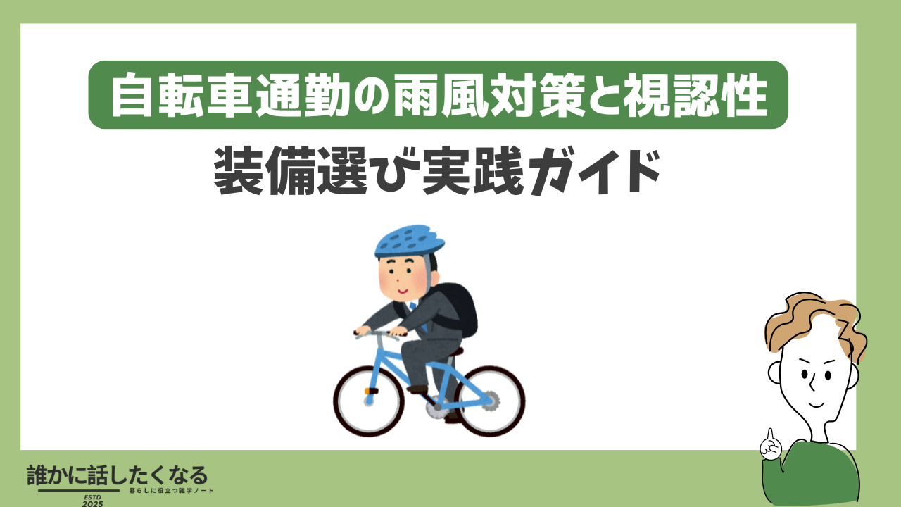 雨・風・暗がりでも“無理なく安全に着く”ための実践ガイド。レインウエアとライトを買うだけでは不十分だ。体(衣類)・自転車(整備)・荷物(防水)・走り方(ライン取り)・見え方/見られ方(視認性)をひと続きの仕組みで整えると、通勤は危険の少ないルーティンに変わる。