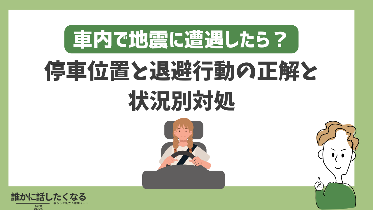車内で地震に遭遇した瞬間は、急がず、知らせ、寄せて止めるが合言葉である。場所ごとの危険の向きと退避の方向を理解し、車を置く決断をためらわないことが命を守る近道になる。
