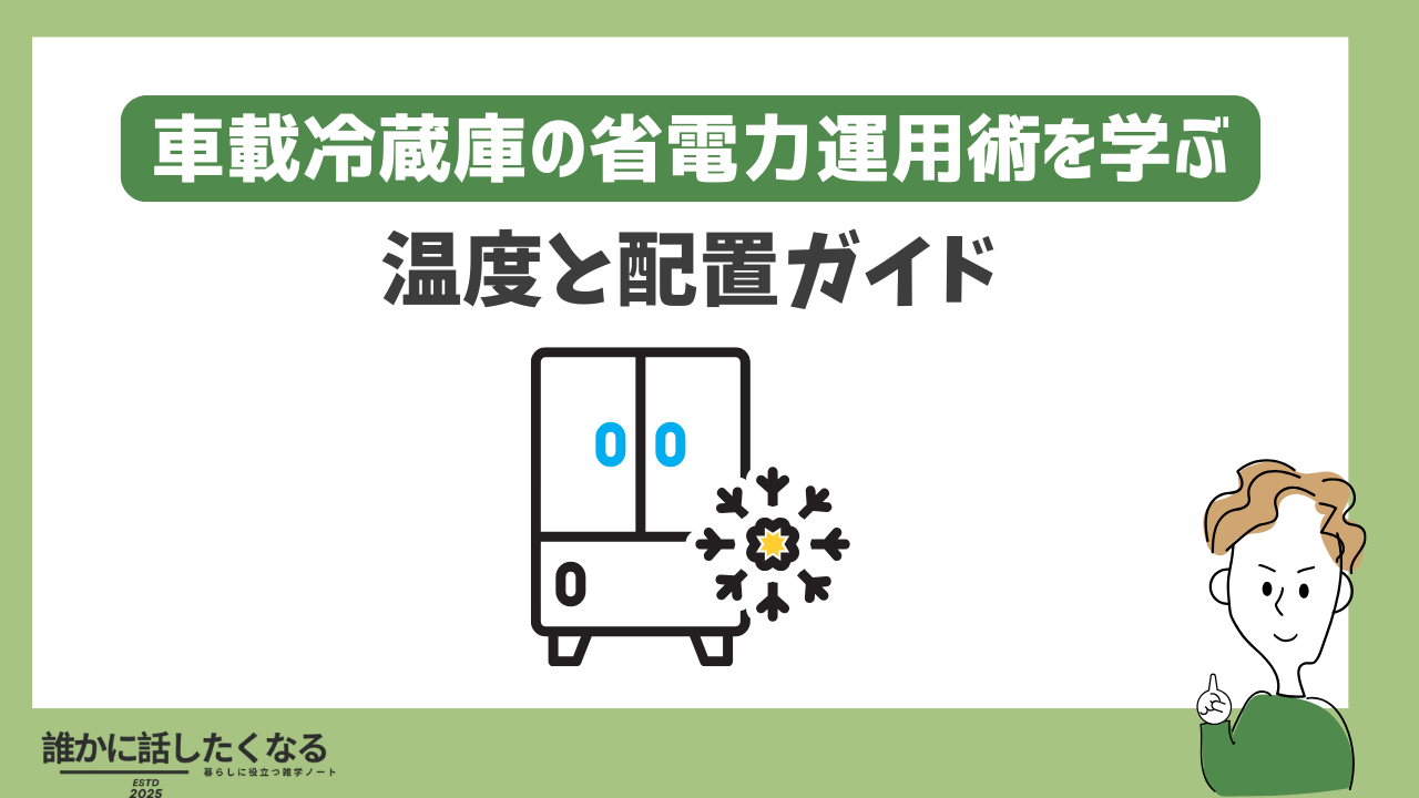 同じバッテリー容量でも、使い方ひとつで保冷時間は倍以上変わる。 本稿は、車載冷蔵庫の温度設定・設置位置・断熱・荷物の詰め方・電源運用を、現場で迷わない順序に落とし込んだ実践ガイドである。