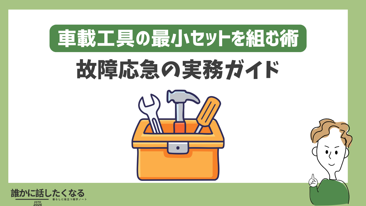 車載工具の最小セットは、対象を絞り、手順を磨き、収納と点検で仕上げることで完成する。長距離や家族旅行でも、最小で最大の効果を生む構成なら、いざという時の判断が速く確実になる。