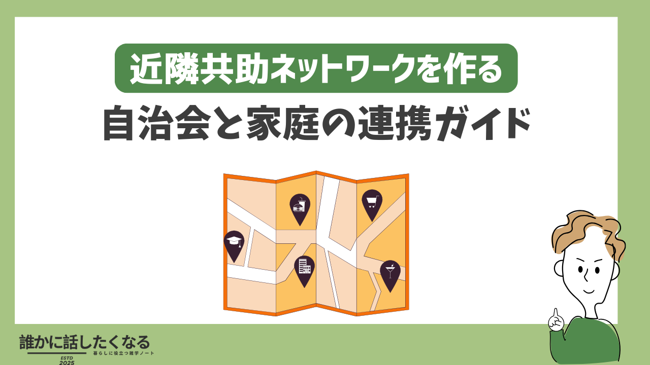「助け合いはしたいけれど、何から始めればいい?」——答えは顔と情報と動線をそろえることです。本記事は、自治会・管理組合・町内会と各家庭が今日から着手できる具体手順を、名簿作り→連絡網→拠点→物資→訓練→見直しの順で徹底解説します。