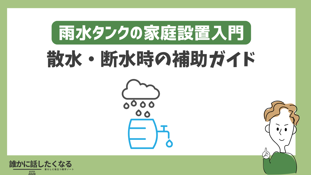 200〜300Lから始め、使い道が回り出したら拡張。残量の見える化・清掃カレンダー・転倒防止まで含めて仕組みにすれば、水道代の節約にも断水時の安心にも直結します。今日、家の樋まわりを見て置ける位置と基礎**を確認し、設置の第一歩を踏み出しましょう。