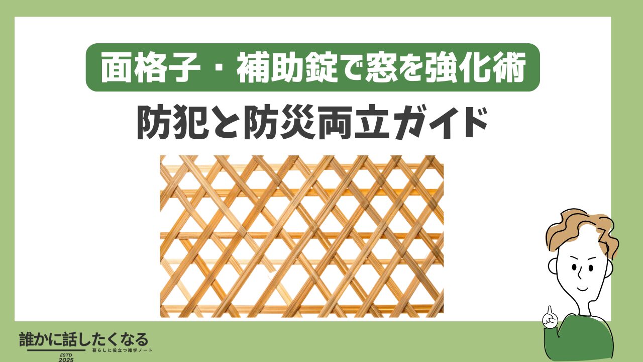 侵入に強く、非常時には避難を妨げない。 窓の対策は面格子と補助錠の組み合わせで“こじ開け・打ち破り・持ち上げ”を止めつつ、避難経路・採光・通風を犠牲にしない設計が鍵だ。