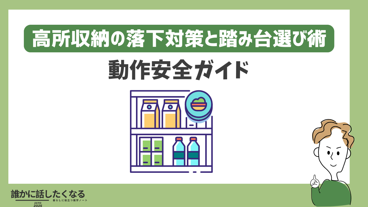 高所収納の事故は、上段に重い物を置かない、前落ちを止める、踏み台を正しく選ぶ、三点支持で作業の4点でぐっと減る。道具は家の床と体格に合わせ、月次点検で緩みや外れを早期に直す。