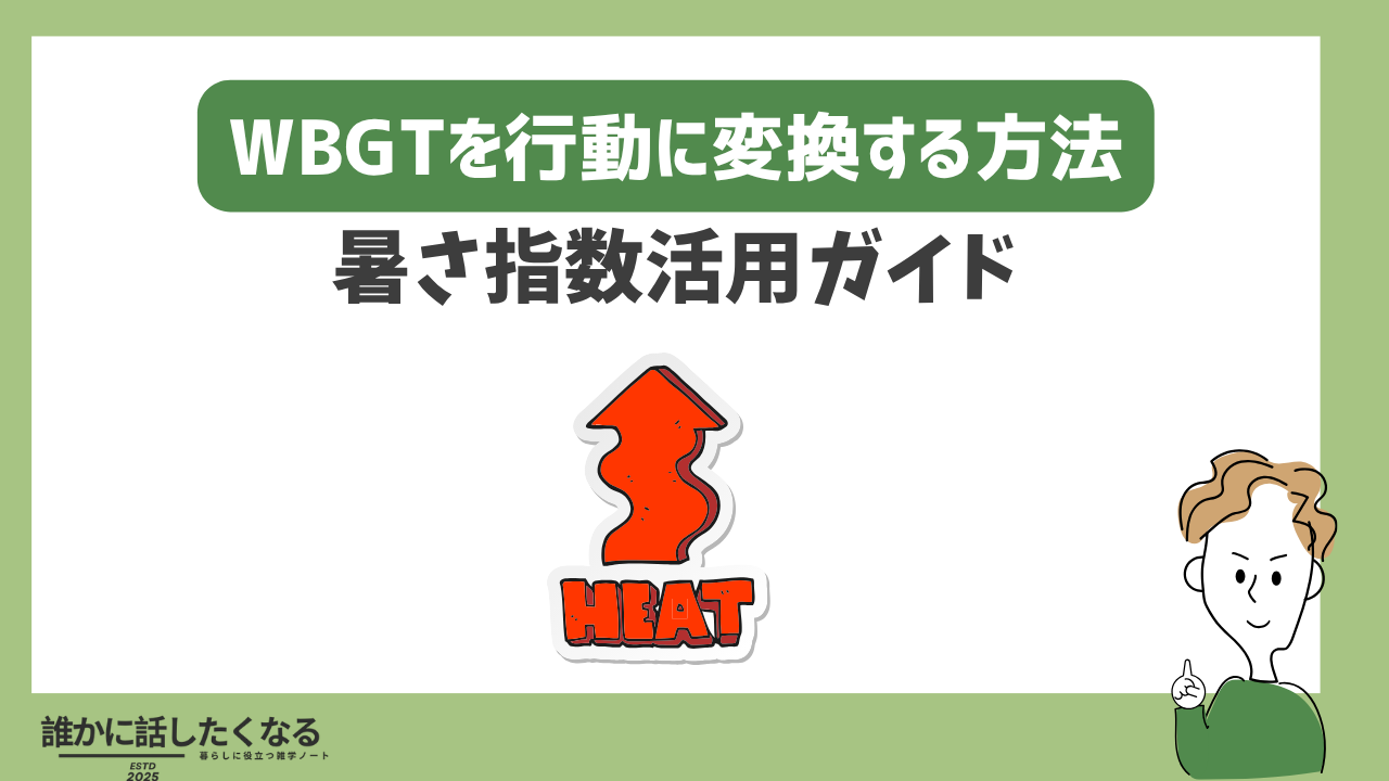 結論:暑さ対策は**「数値→行動」の型に落とすと迷いません。WBGT(暑さ指数)は気温・湿度・日射(輻射)・風**の影響をまとめて示す指標で、体感と熱中症リスクをより正確に映します。本稿では、